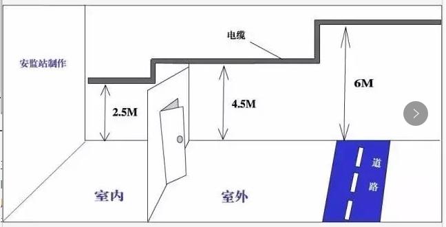 臨時線路必須采用絕緣良好的導線,其截面應能滿足用電負荷和機械強度的需要。應用電桿或沿墻用合格瓷瓶固定架設,導線距地面的高度室內應不低于2.5米,室外不低于4.5米,與道路交叉跨越時不低于6米。《電氣安全管理規(guī)程》(機械工業(yè)部[86]機生字76號)第二十條第1項。