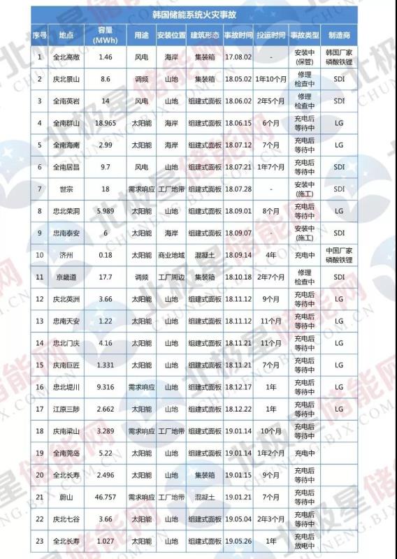 韓國政府公布23起儲能電站火災事故調查結果 并提出四大改善措施
