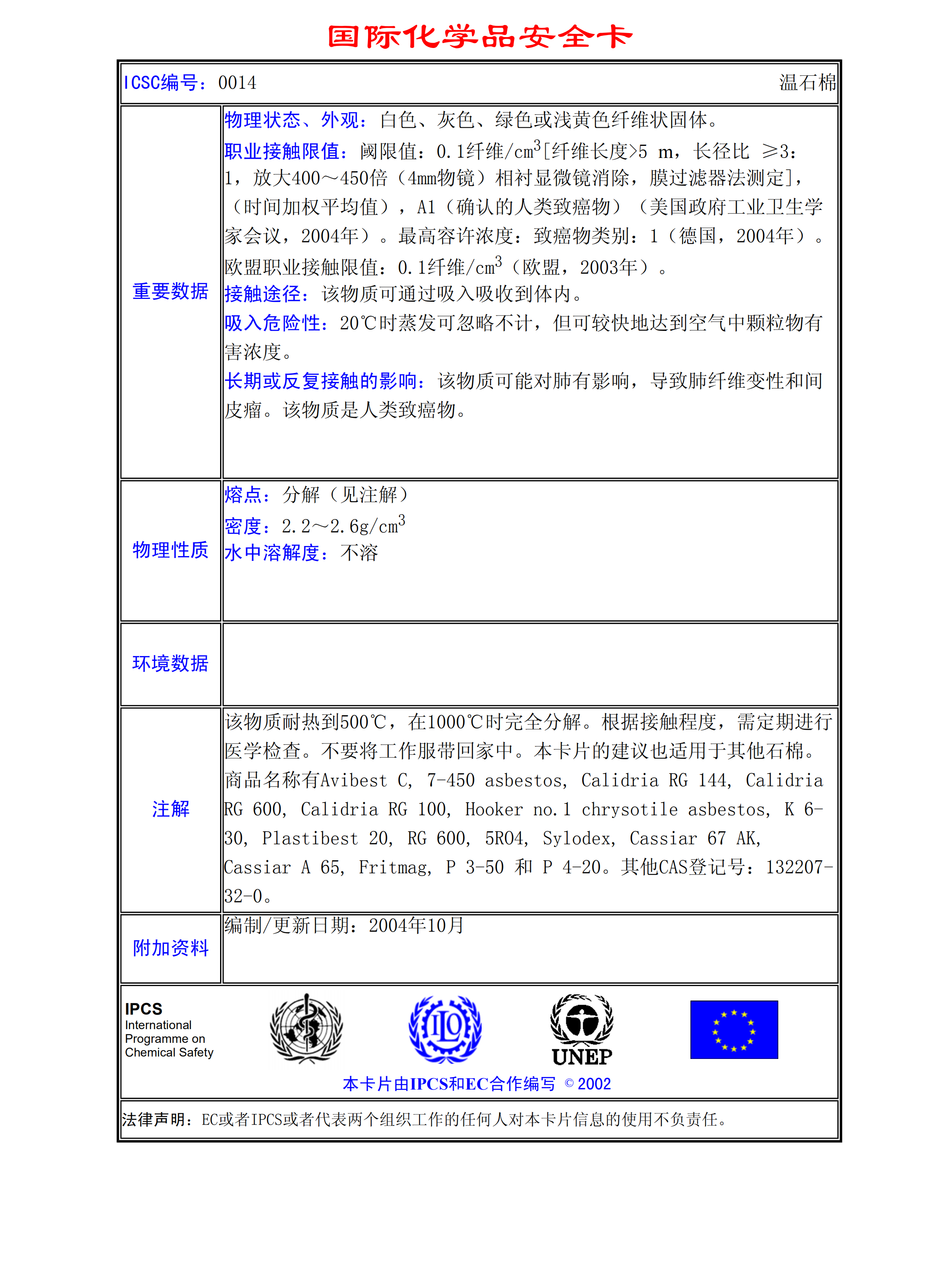 溫石棉MSDS