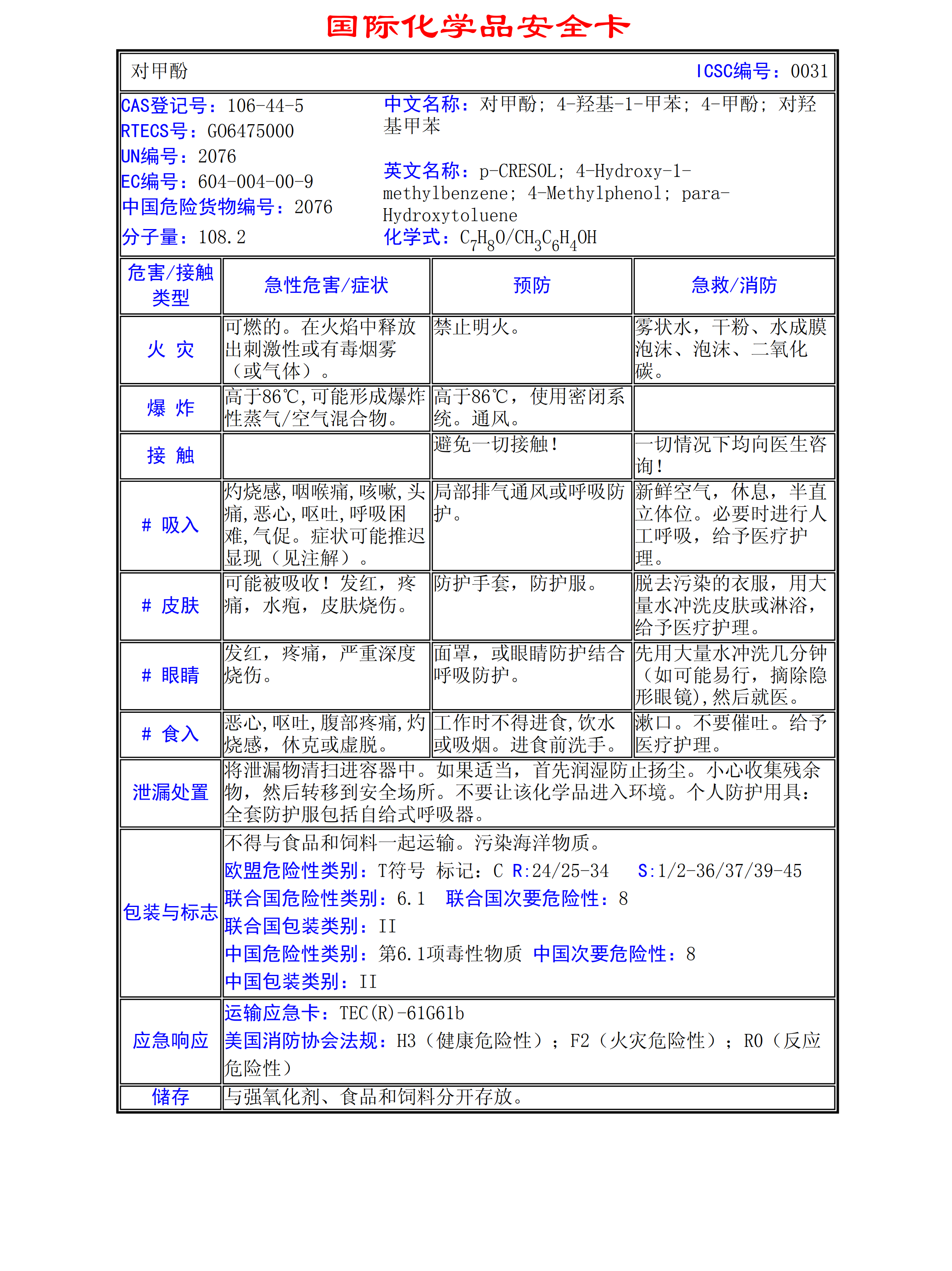 對甲酚MSDS