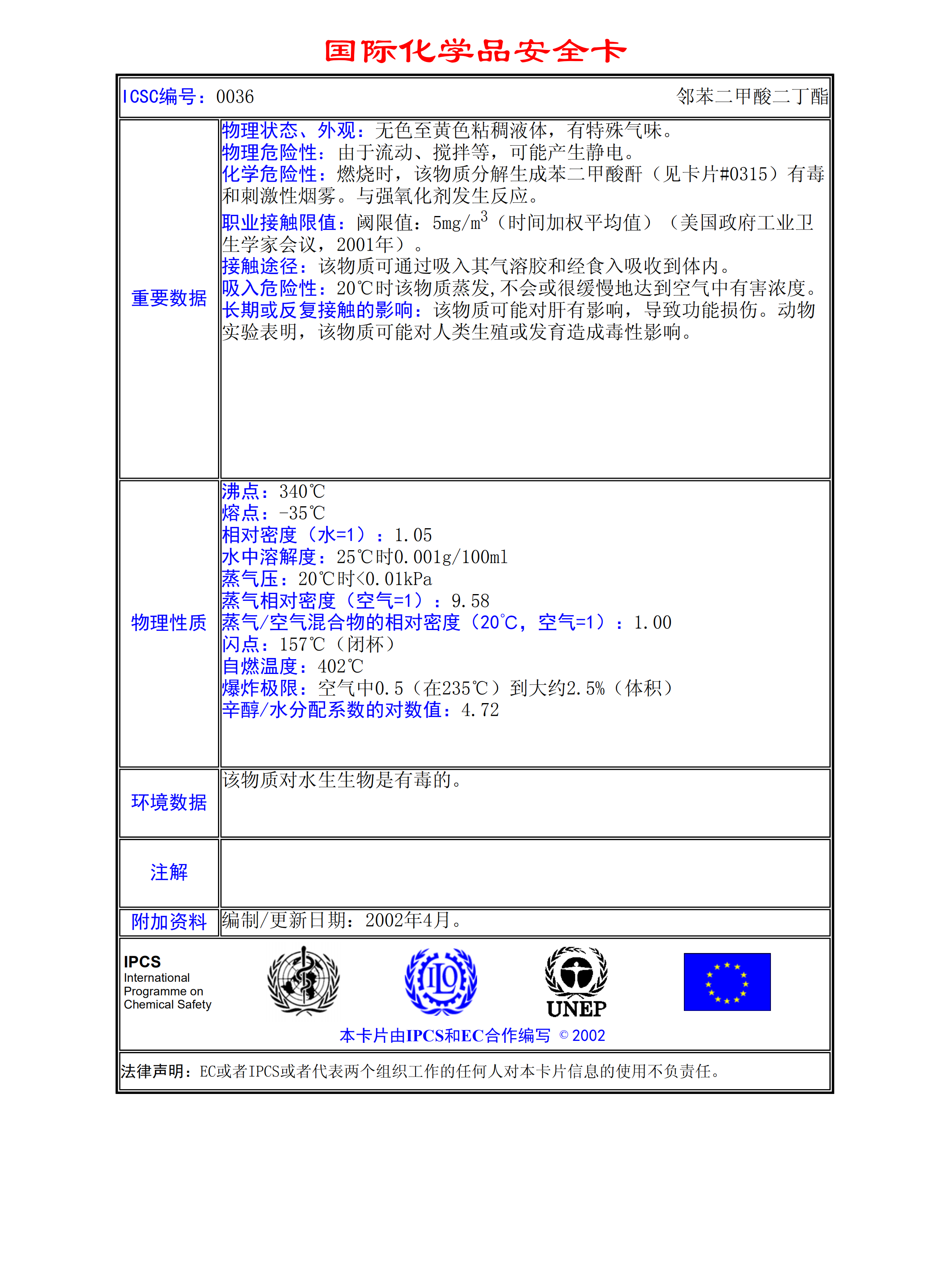 鄰苯二甲酸二丁酯MSDS