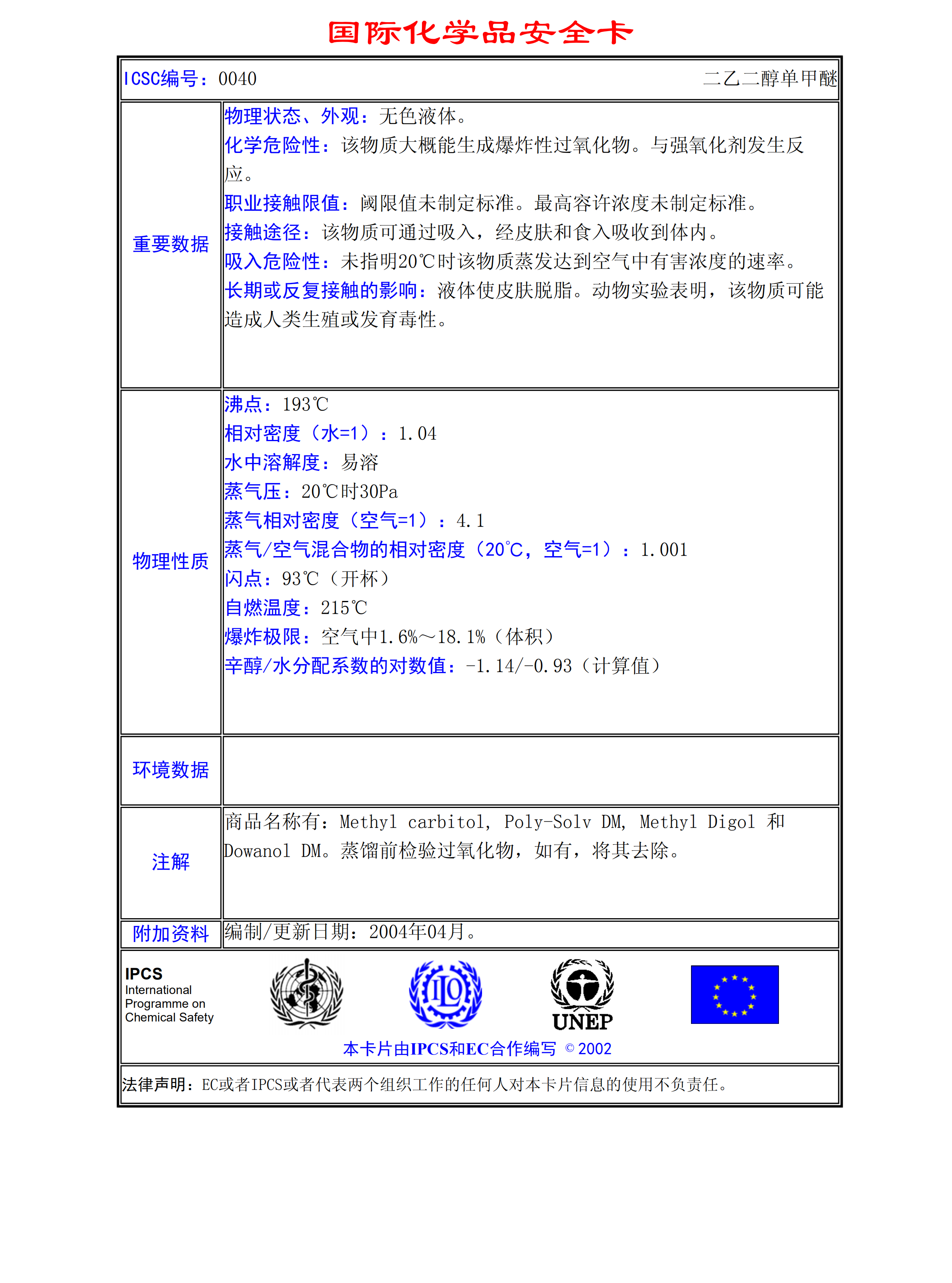 二甘醇單乙醚MSDS