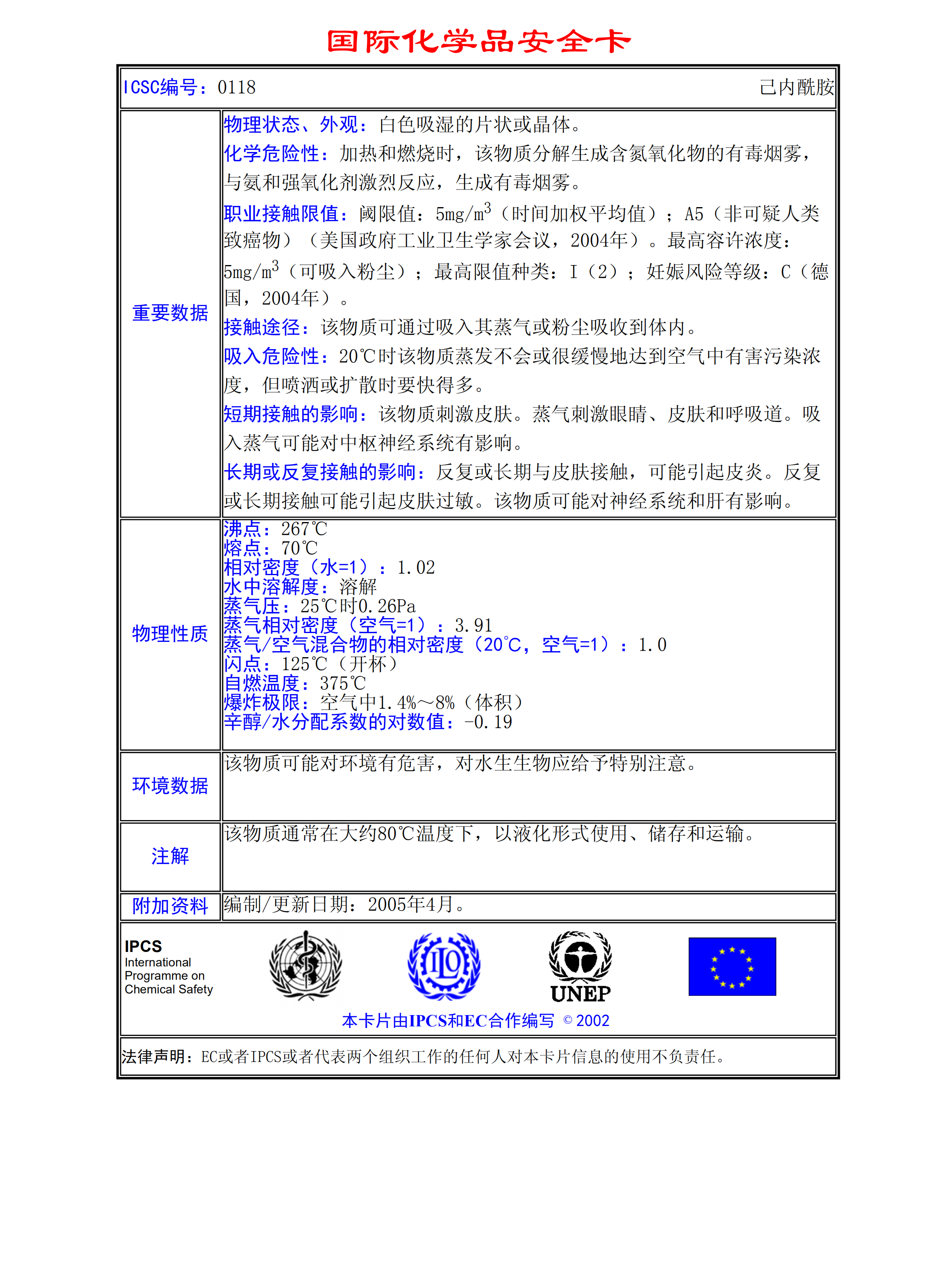 己內酰胺MSDS