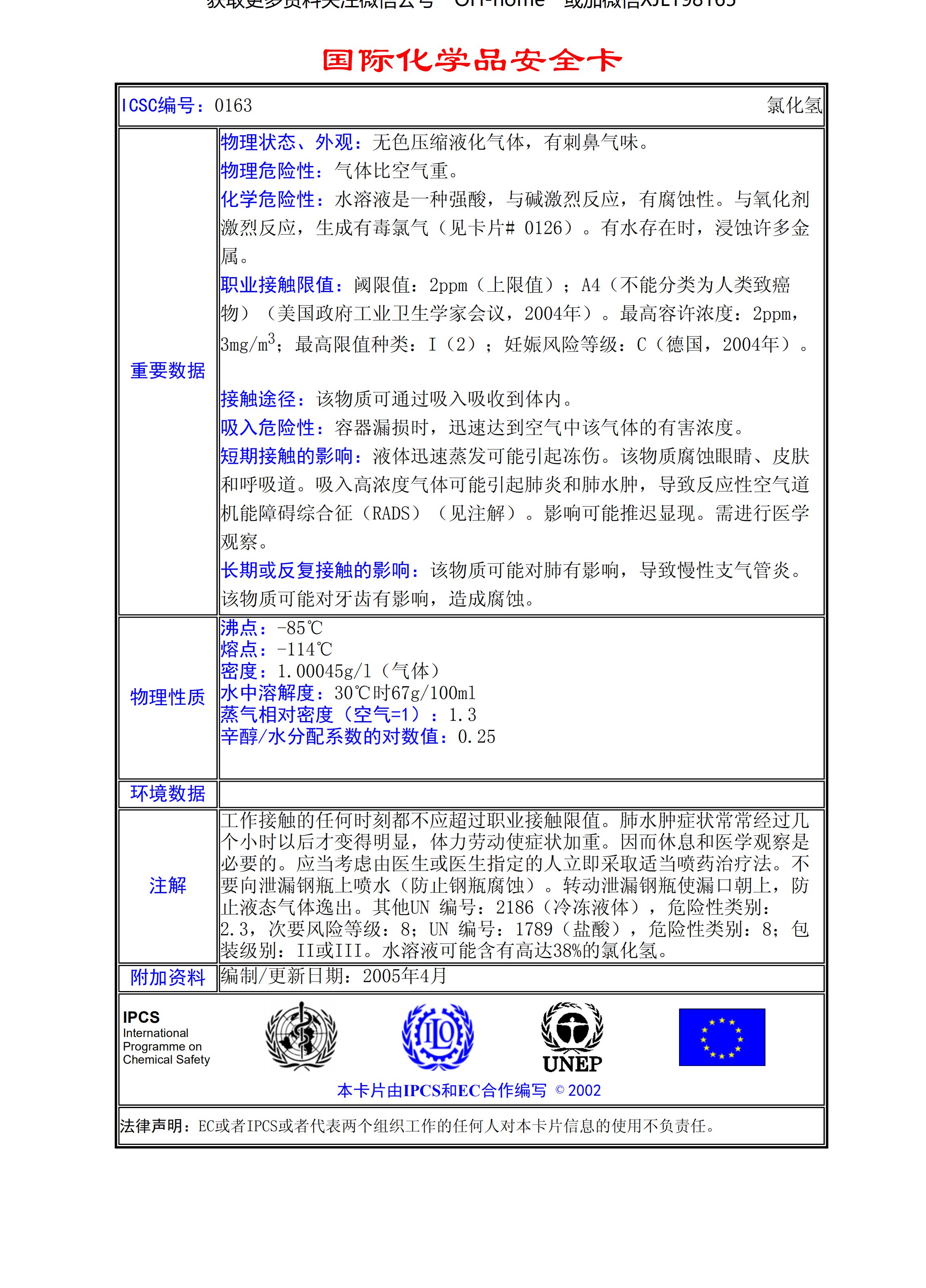 氯化氫MSDS