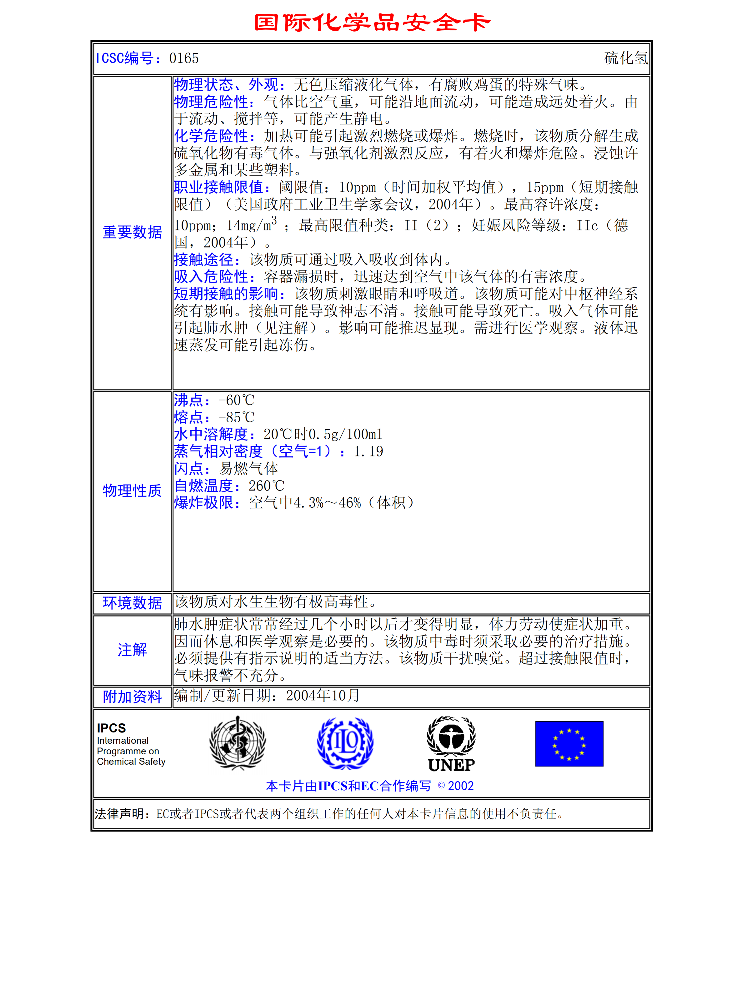 硫化氫MSDS