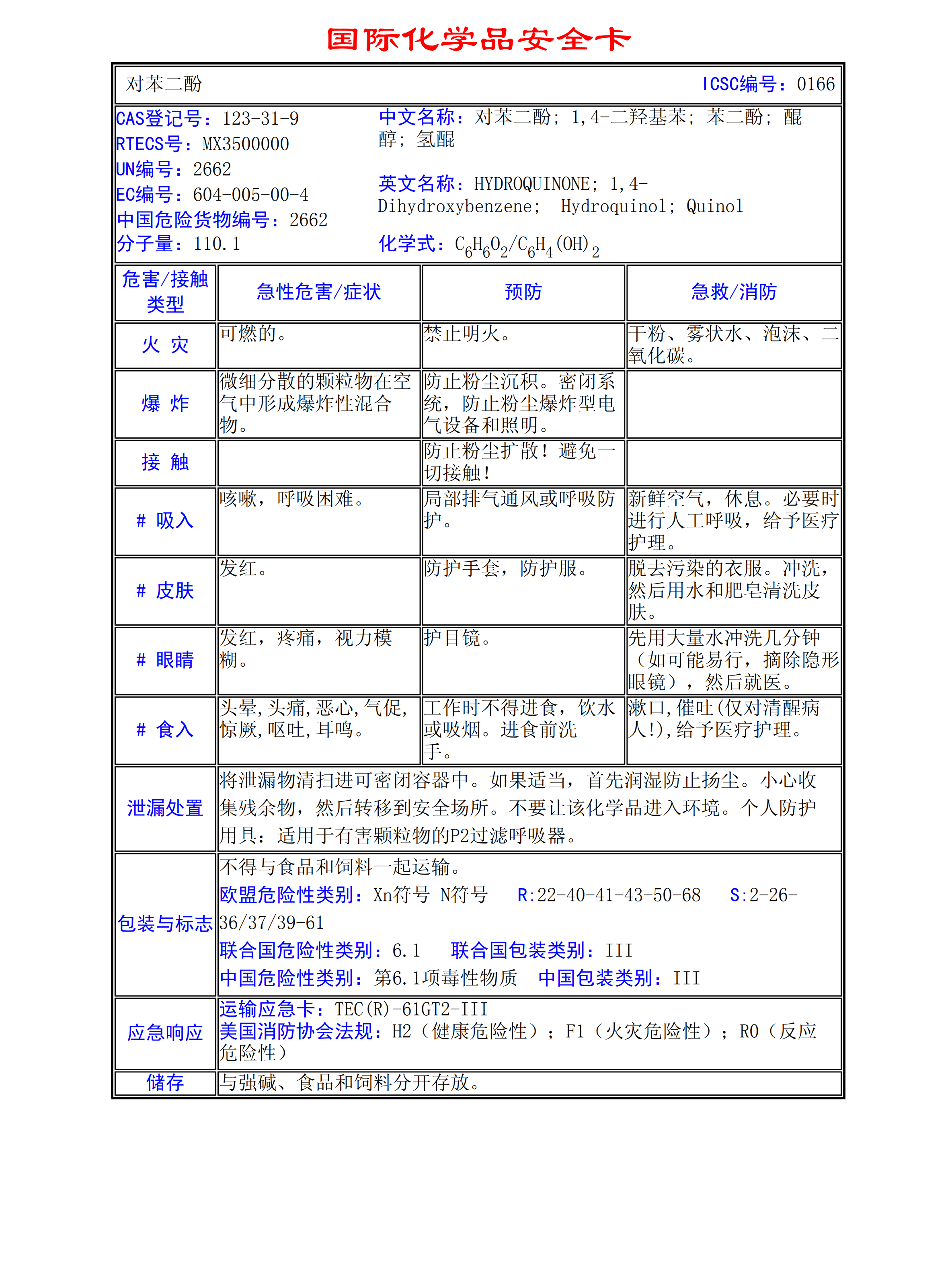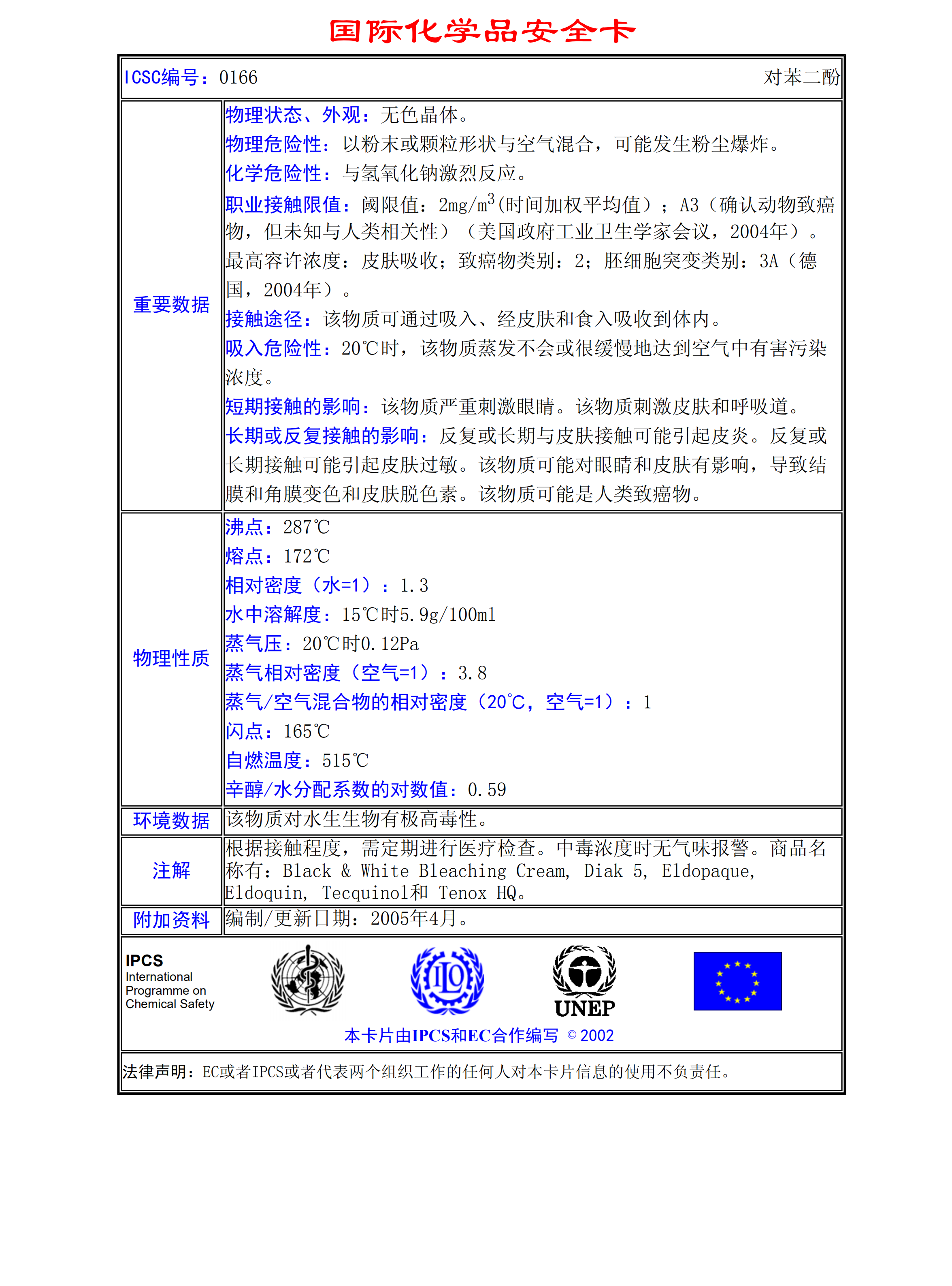 對苯二酚MSDS