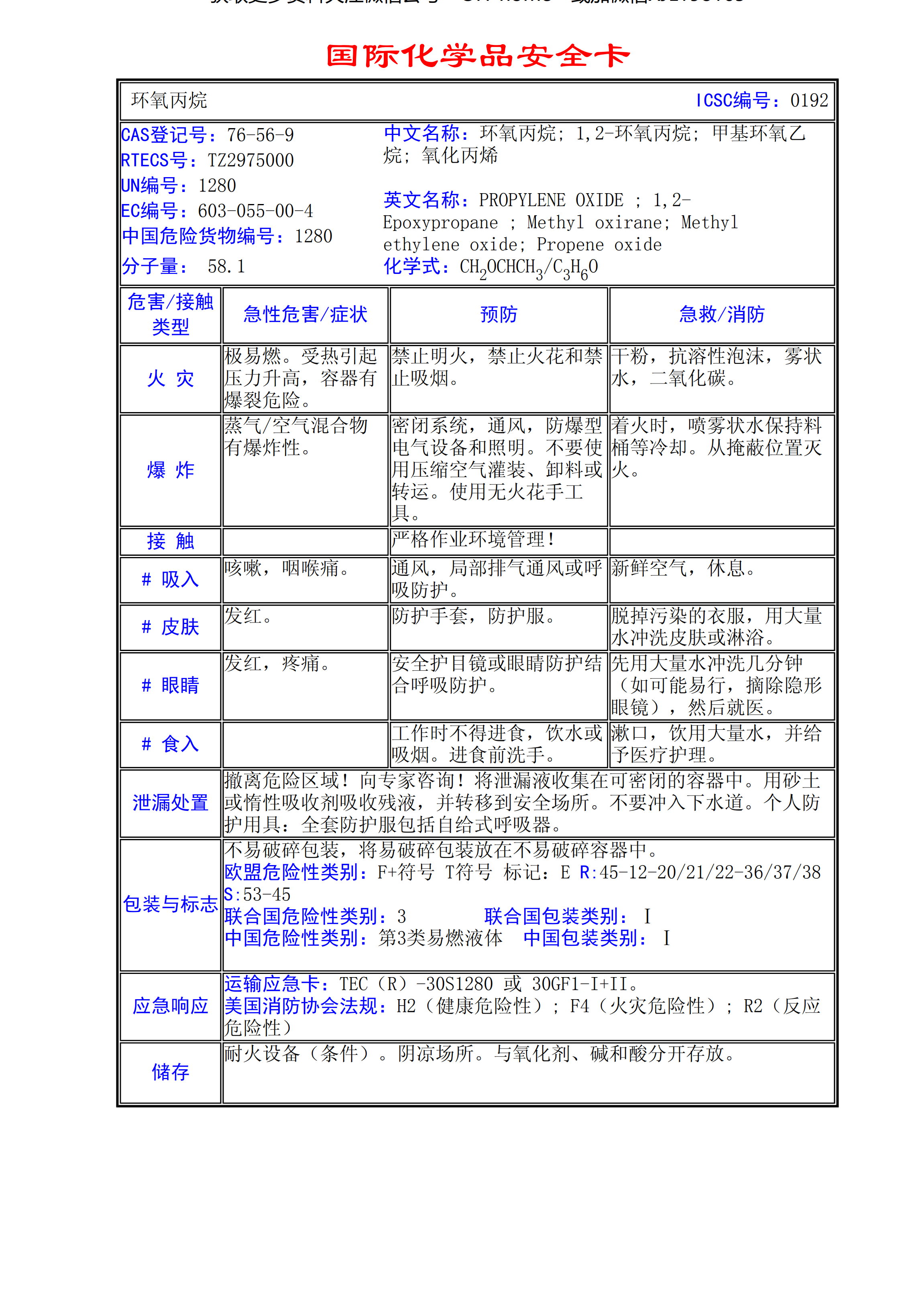 環氧丙烷MSDS