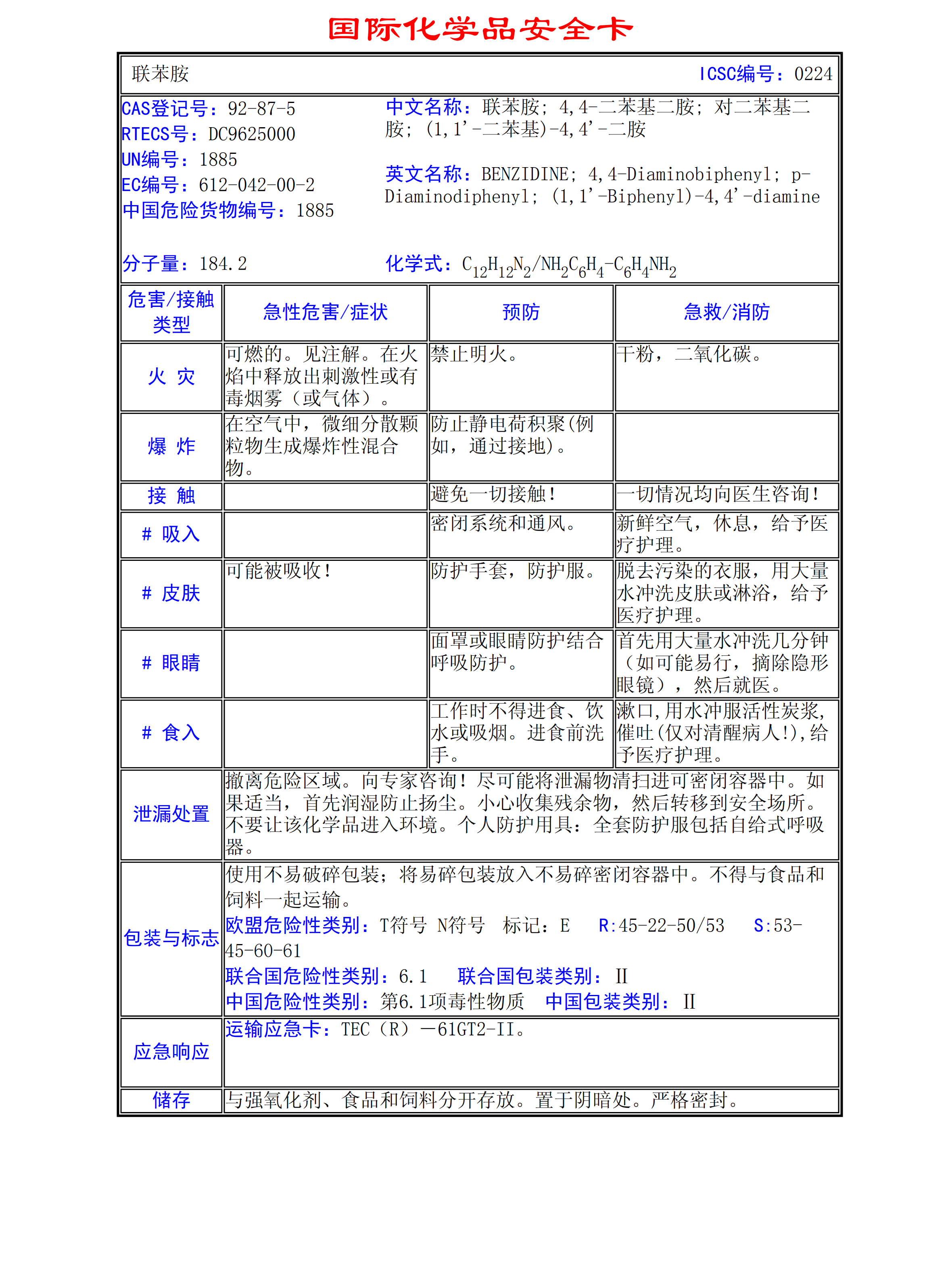 聯苯胺MSDS