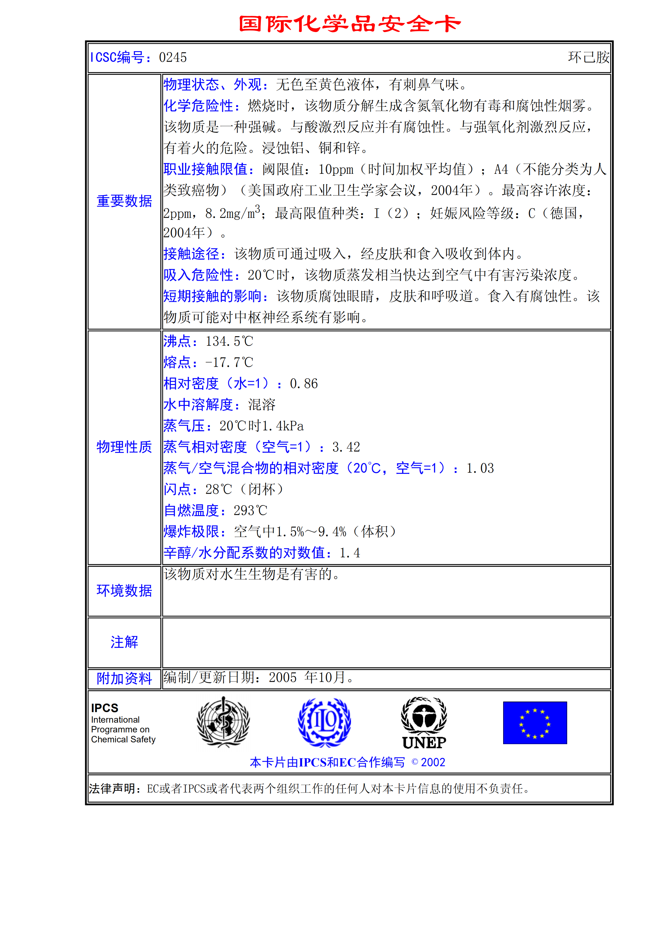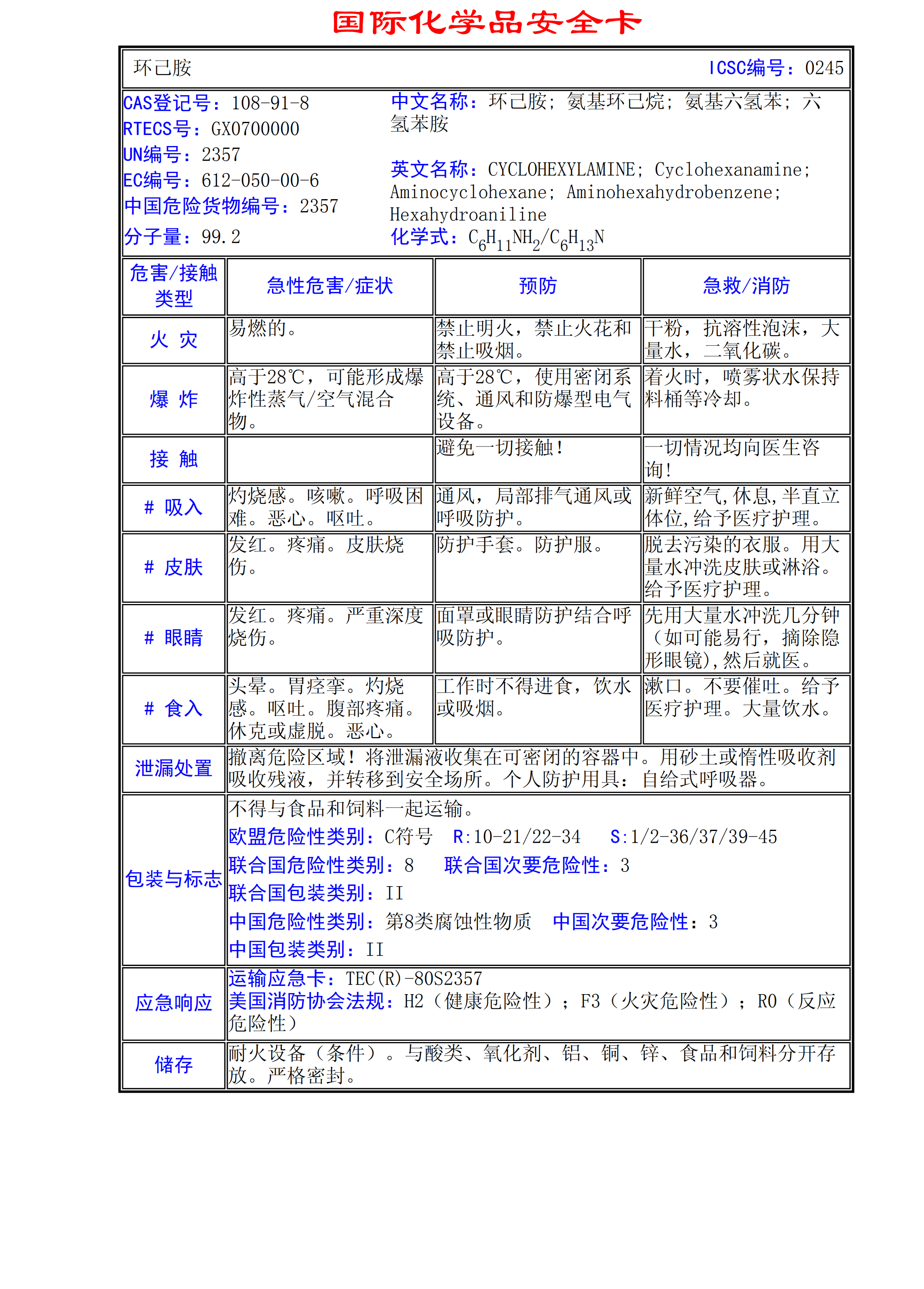 環己胺MSDS