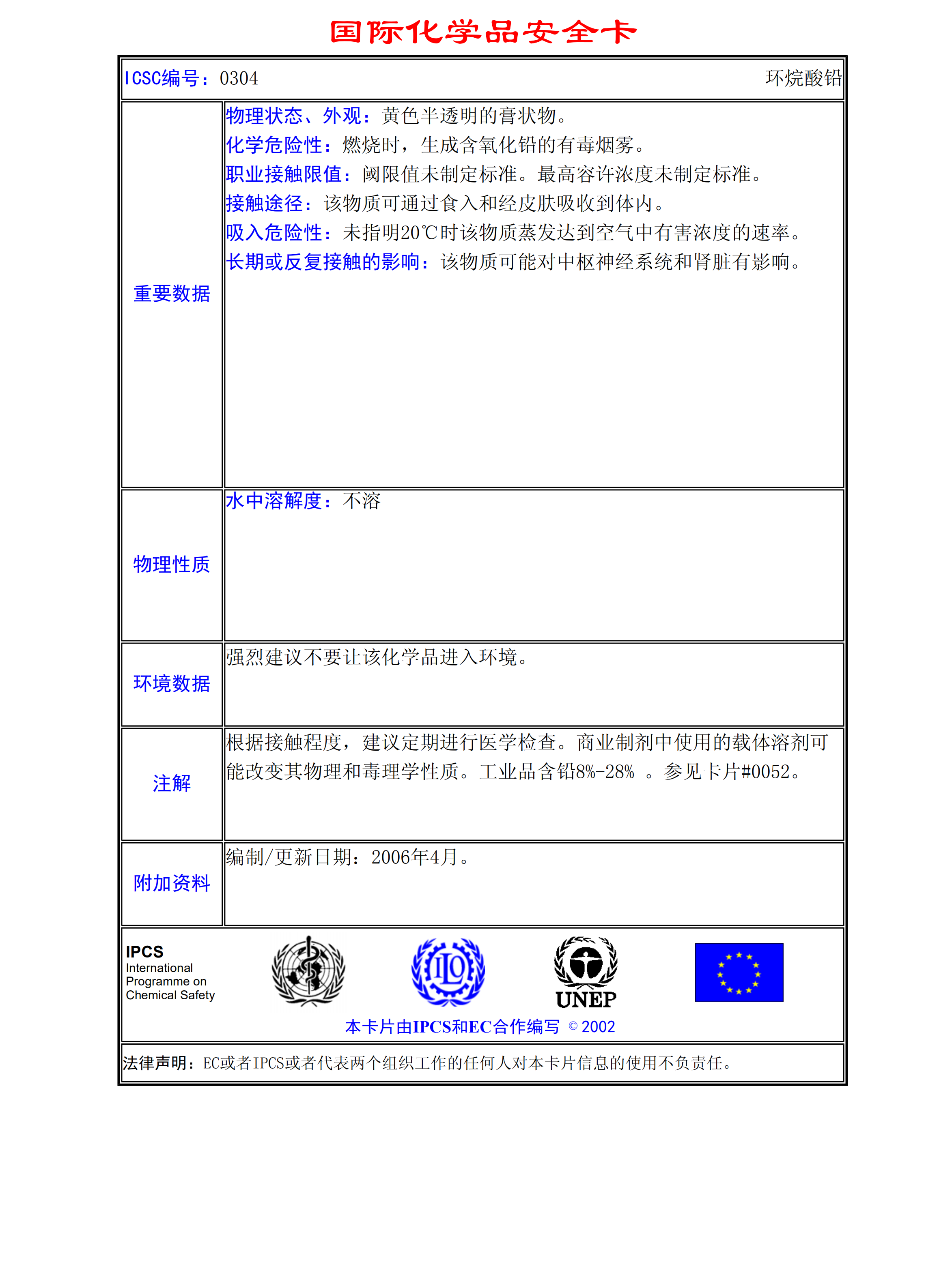 環烷酸鉛MSDS