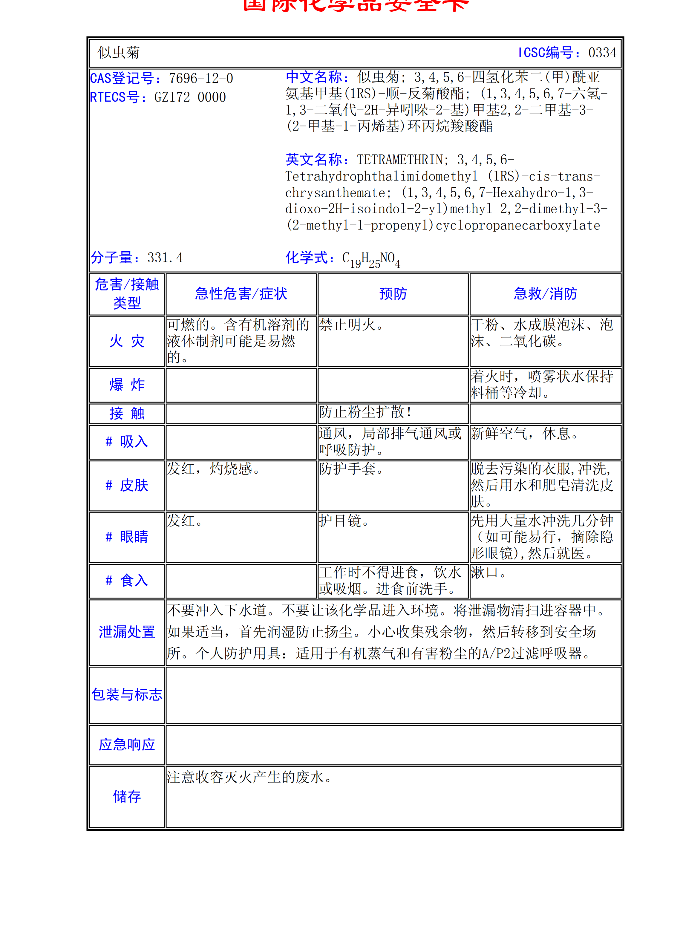 右旋似蟲菊MSDS