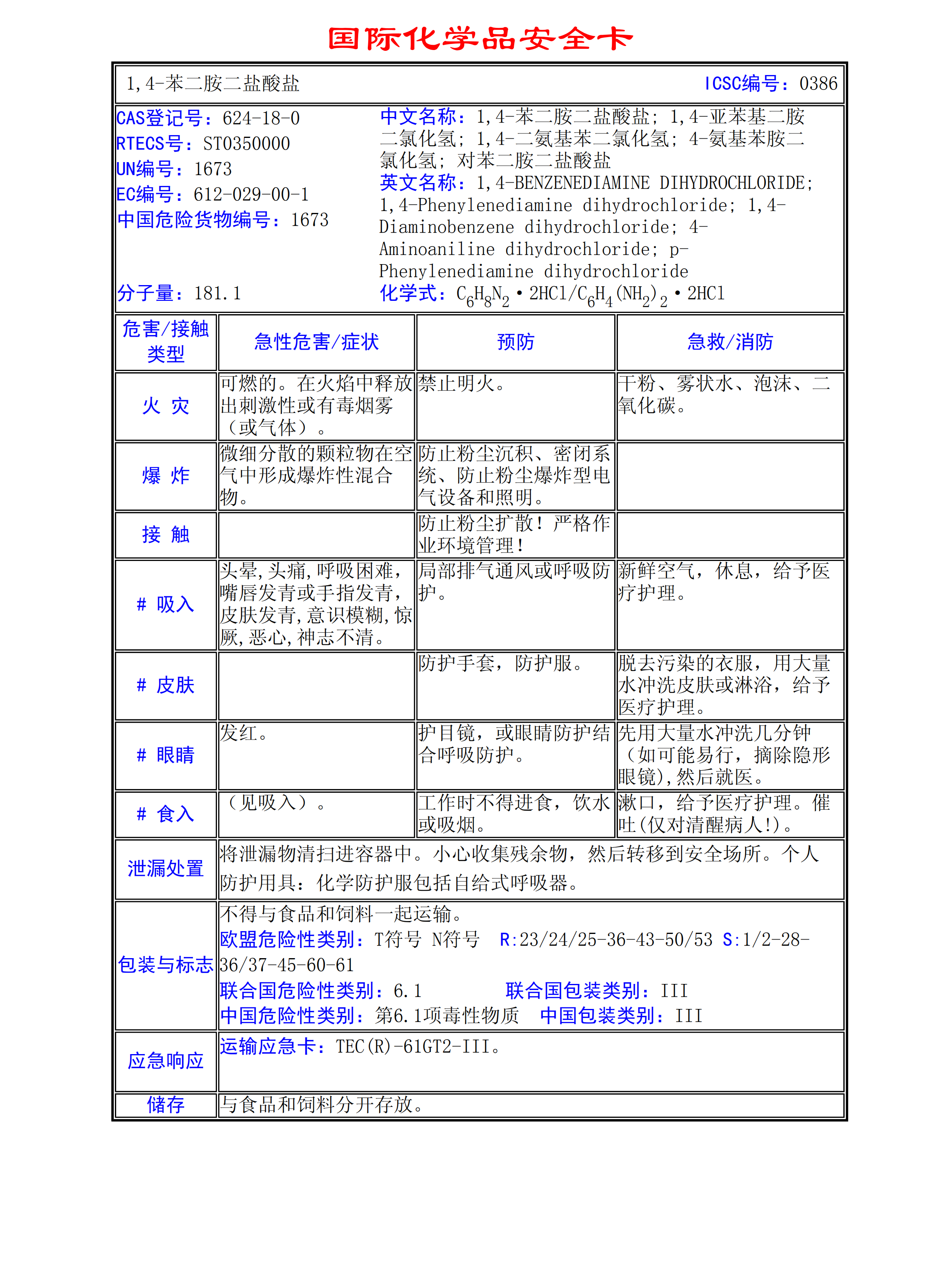 1,4-苯二胺二鹽酸鹽MSDS