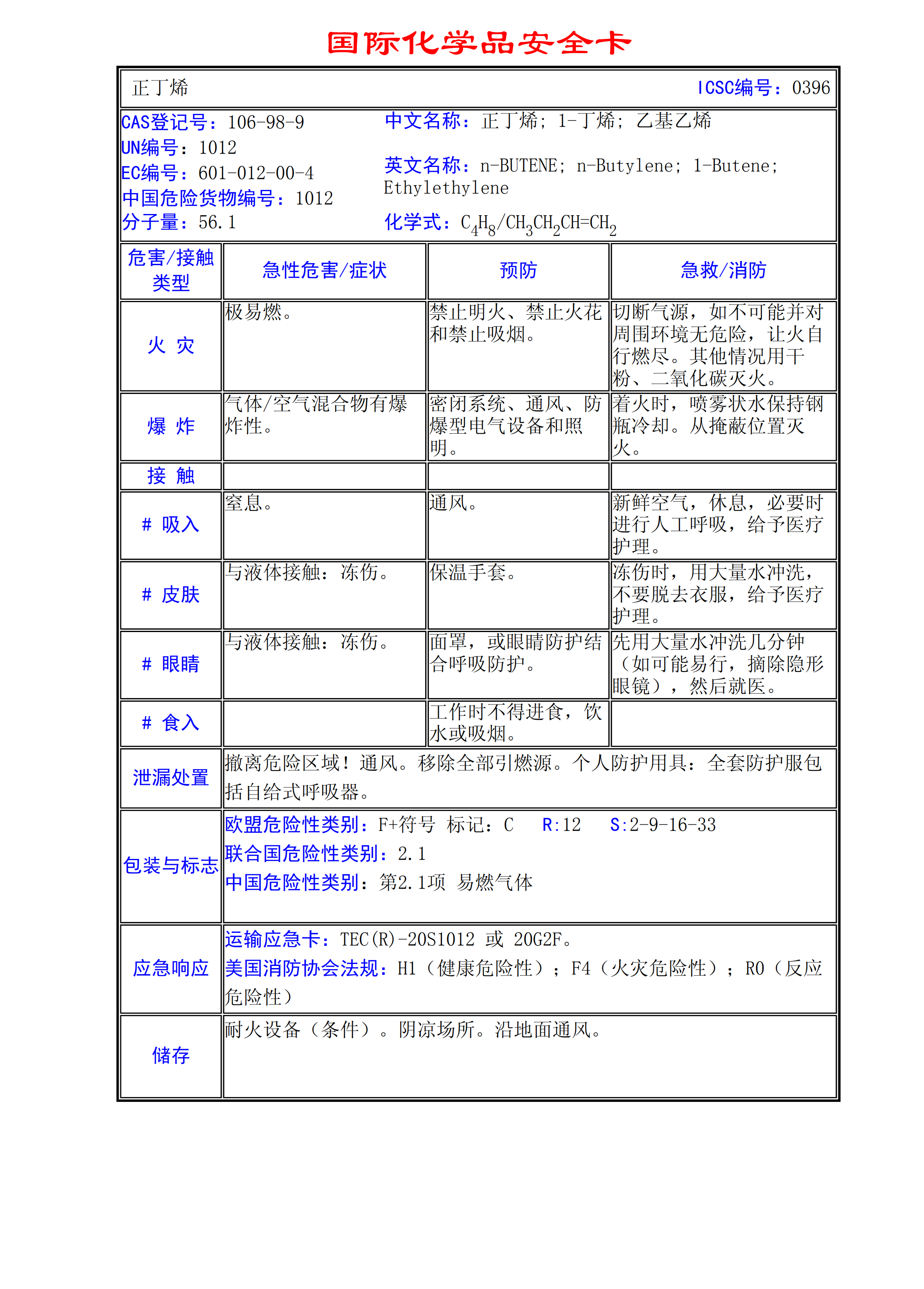 正丁烯MSDS