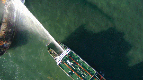 舟山隊“中化應急”號救援船撲救著火油船