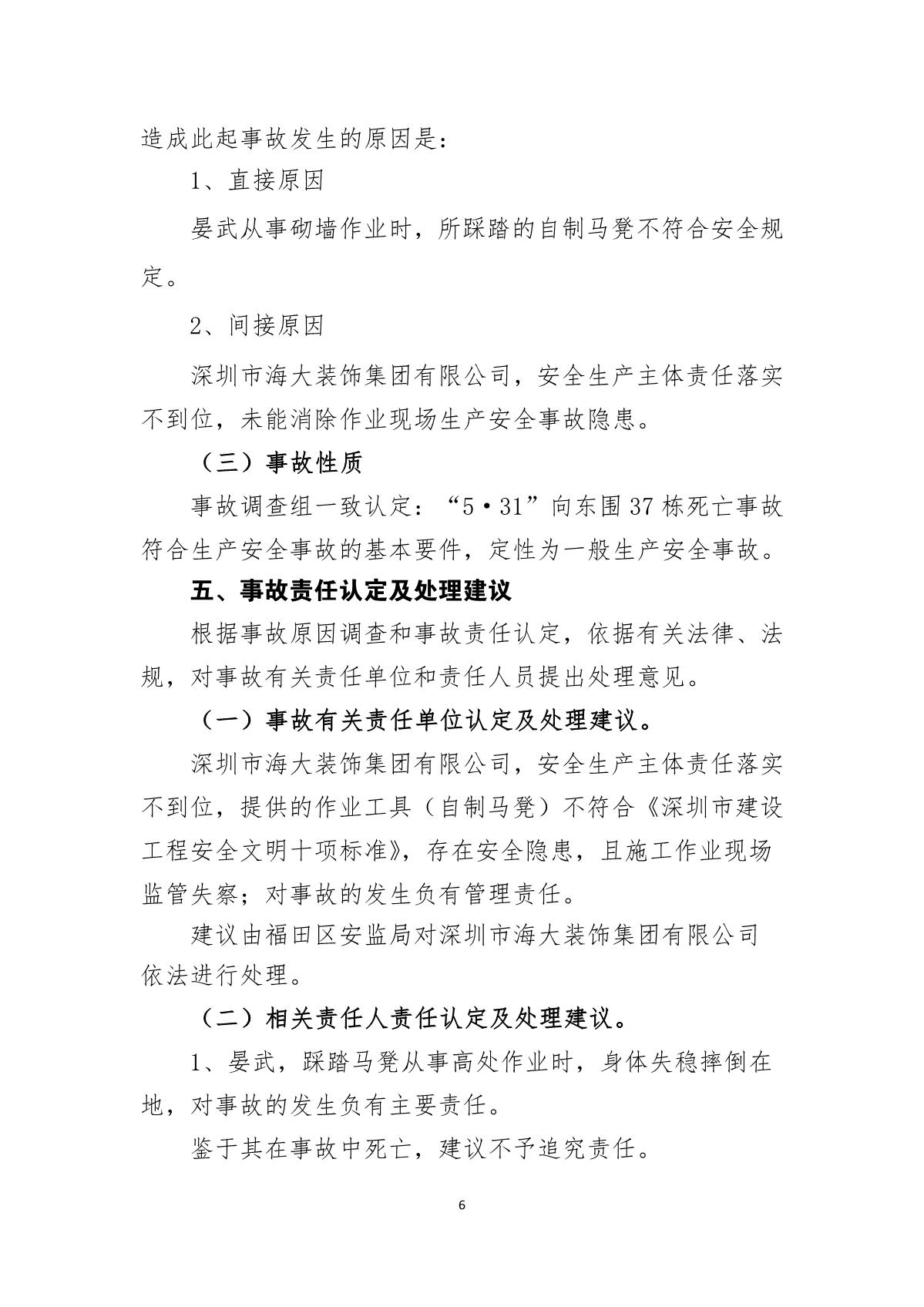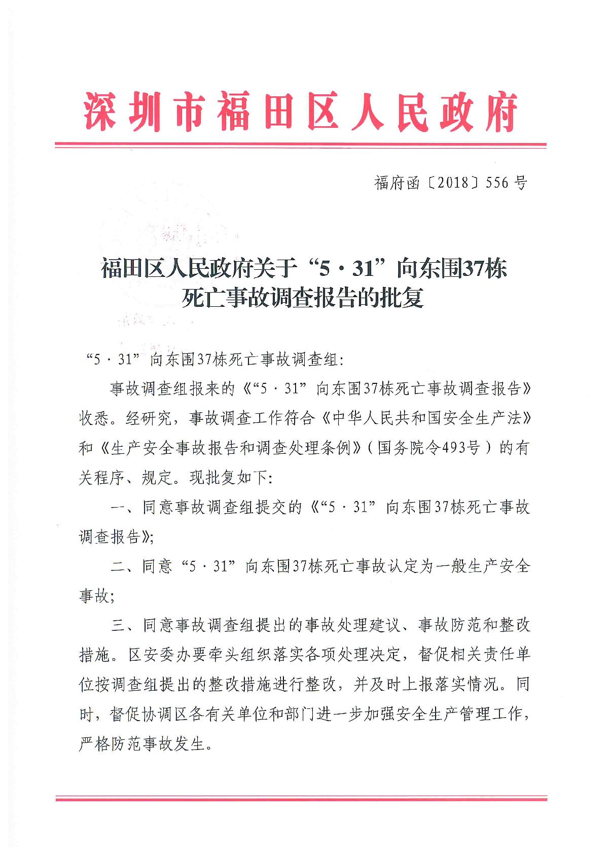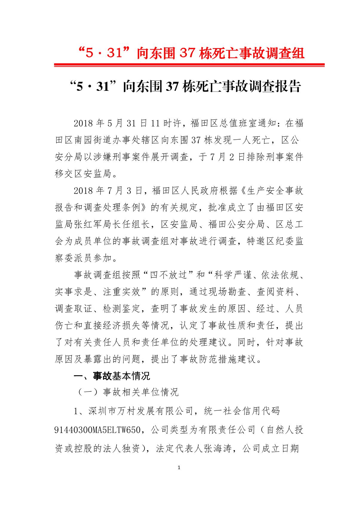 “5.31”向東圍37棟死亡事故調查報告