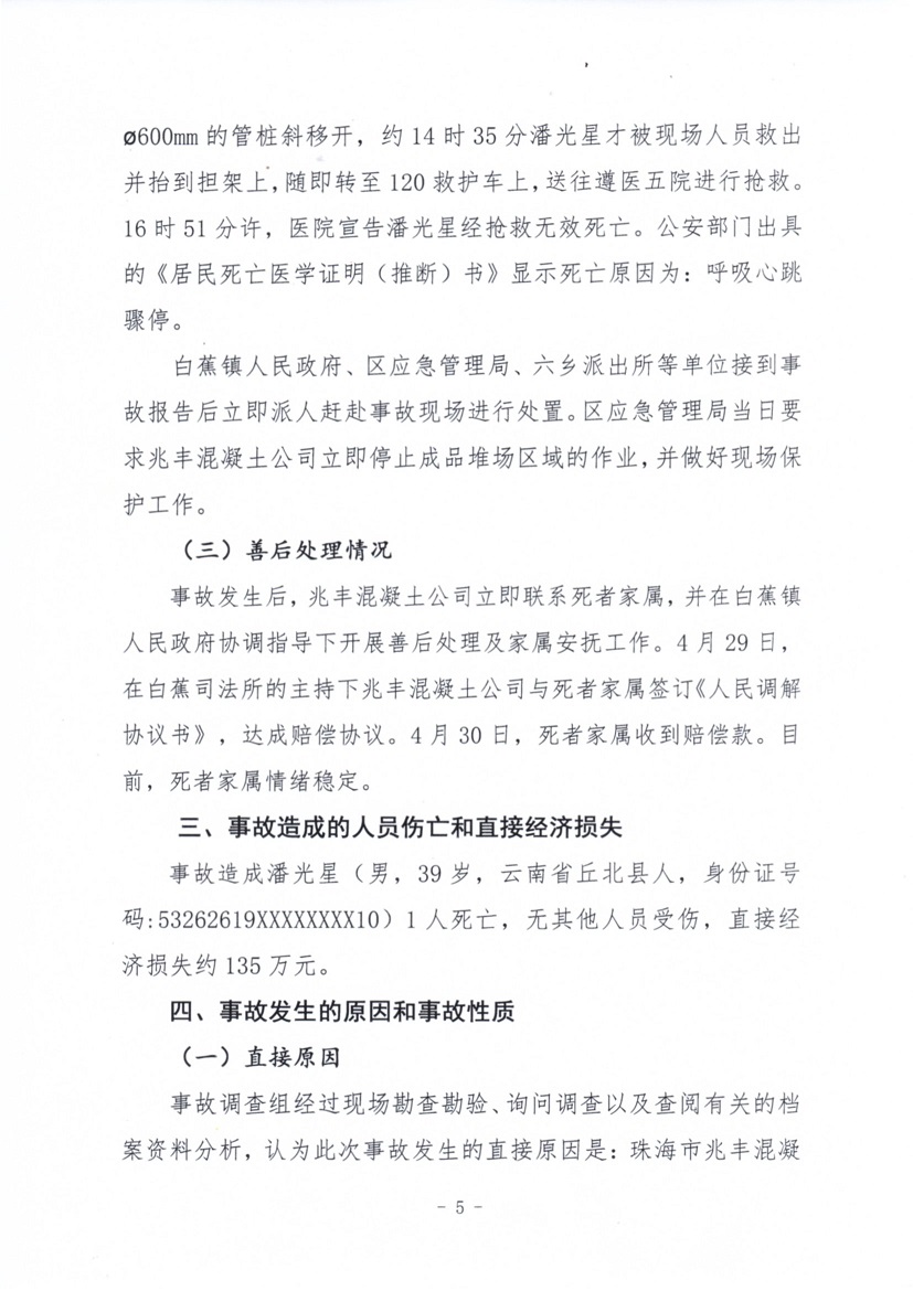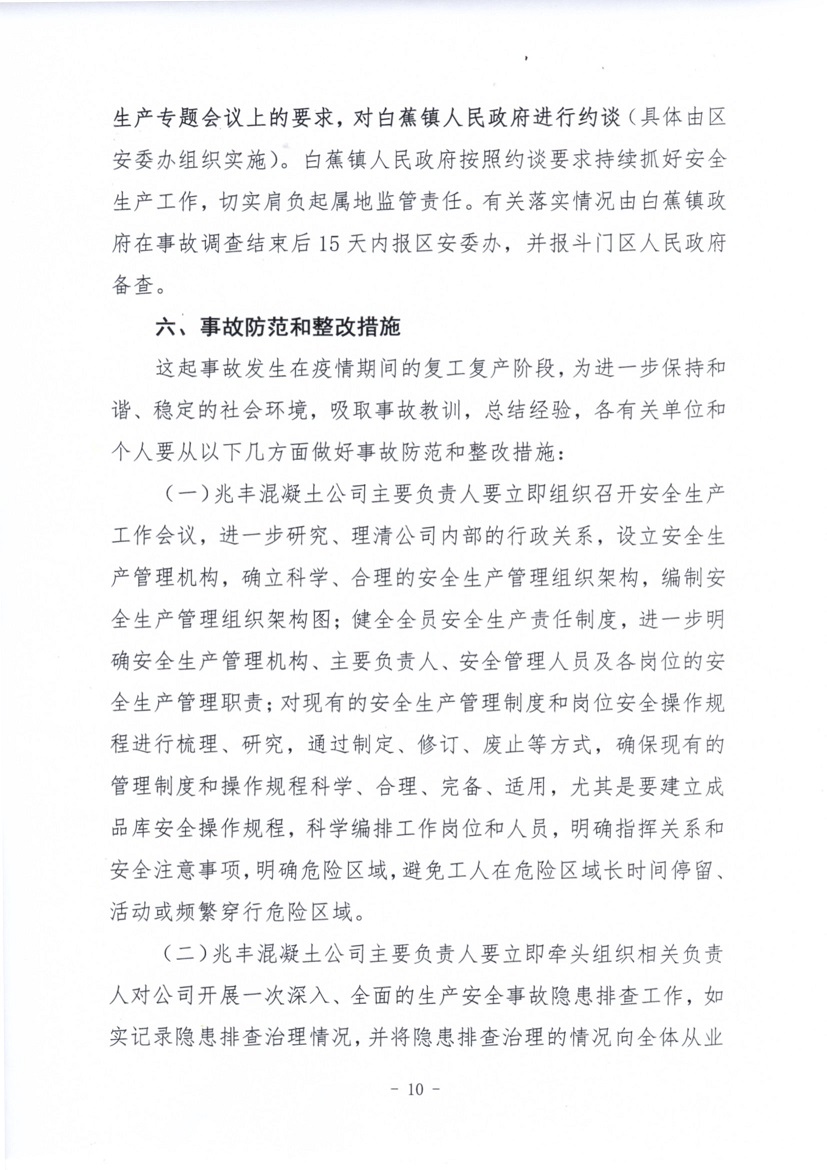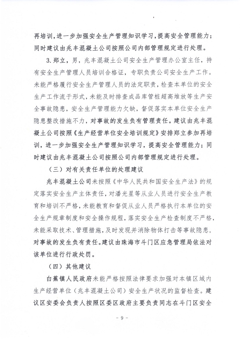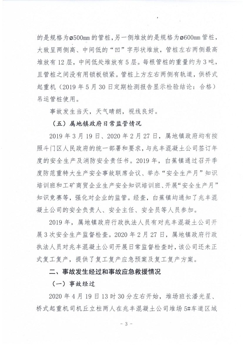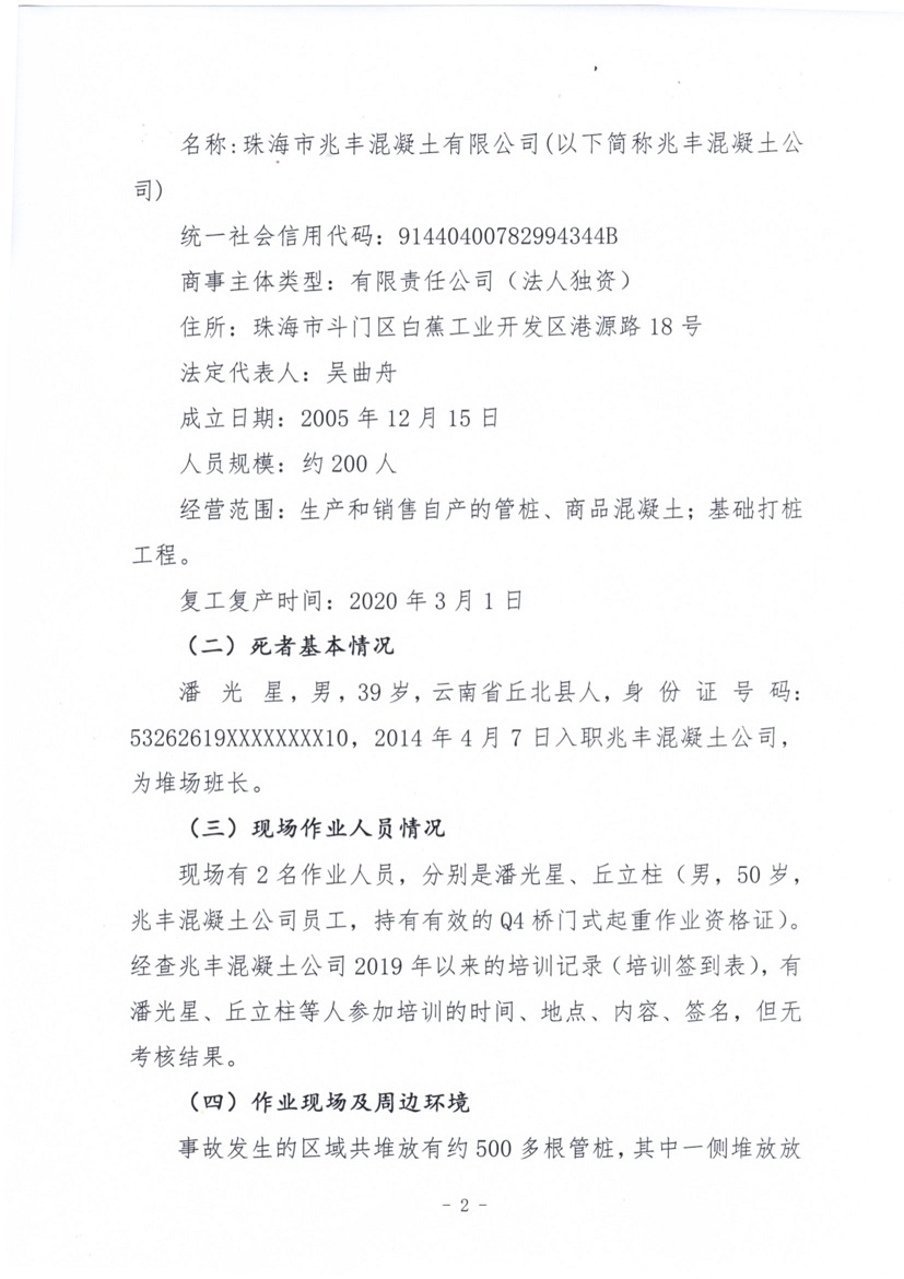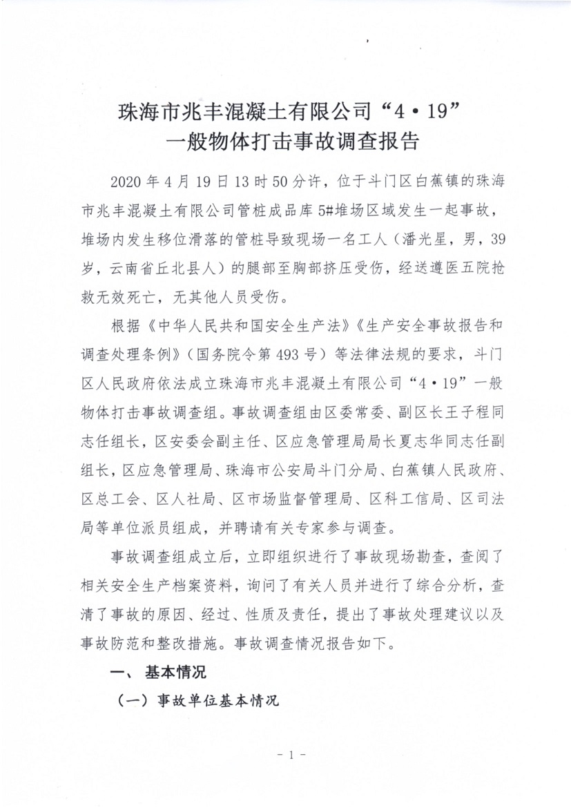 珠海市兆豐混凝土有限公司“4·19”一般物體打擊事故調查報告