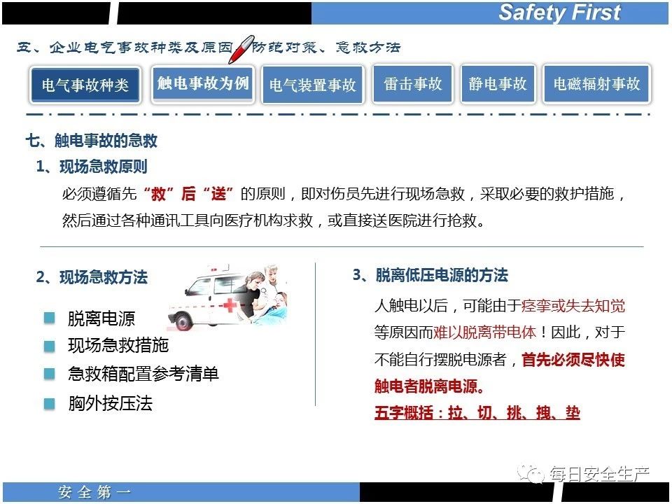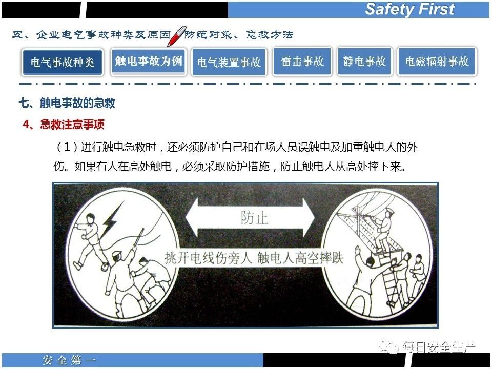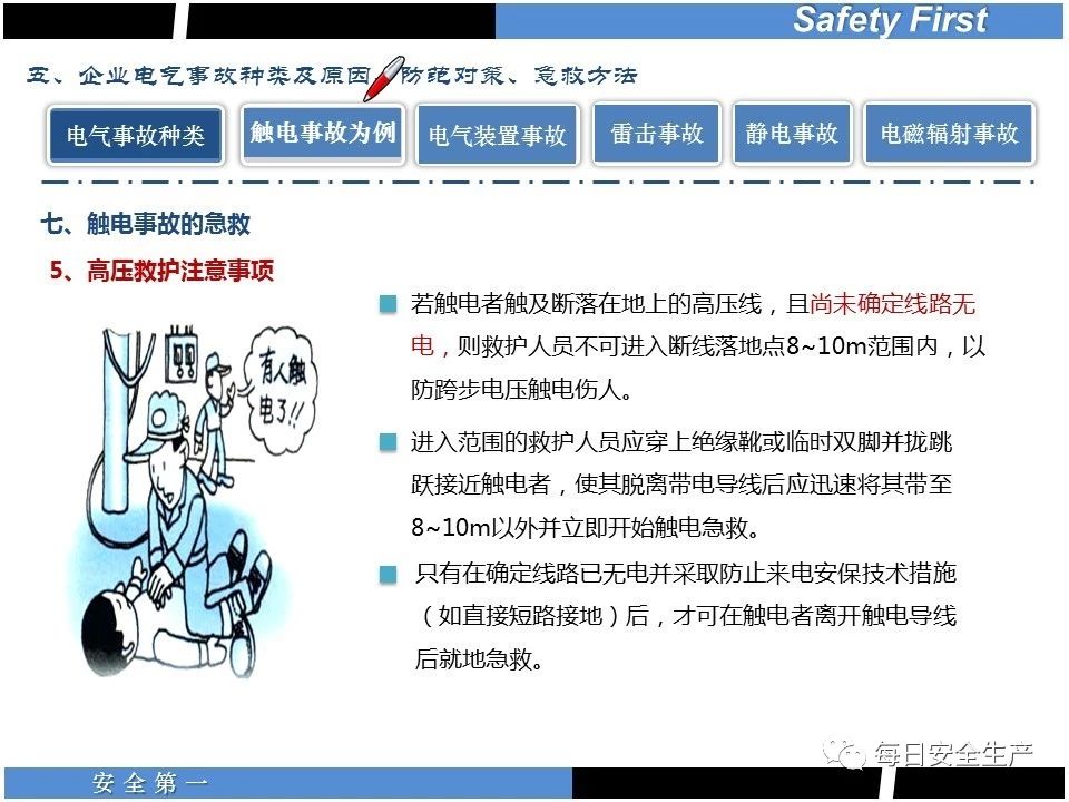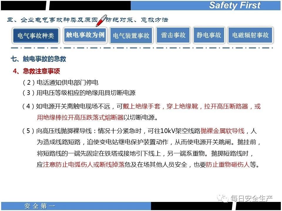 遇到觸電事故,現場救援必須注意以下幾點: