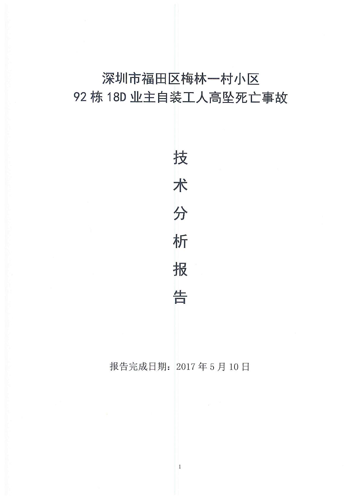 深圳市福田區梅林一村小區92棟18d業主自裝工人高墜死亡事故技術分析報告
