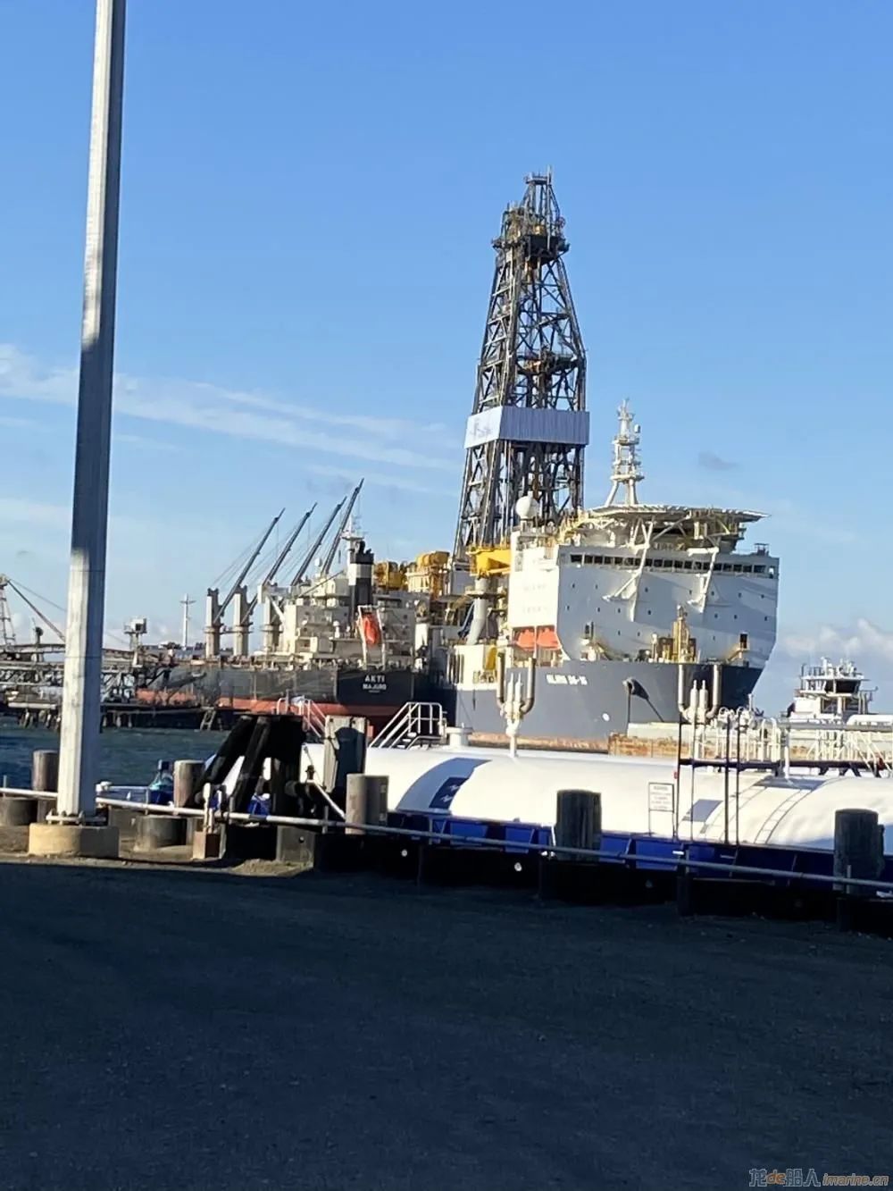 據(jù)報(bào)道,這艘鉆井船可以裝載58萬加侖的柴油。據(jù)美國海岸警衛(wèi)隊(duì)稱,這艘鉆井船由三艘拖輪錨泊。