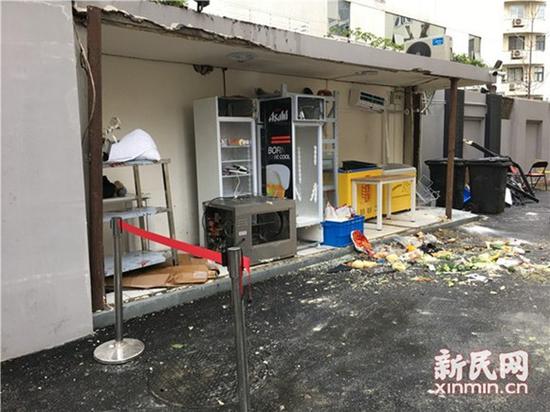 今天上午,新民晚報記者在事發(fā)現(xiàn)場看到,新閘路1039弄弄口人行道上,一臺挖掘機(jī)已對受損管道區(qū)域進(jìn)行開挖,現(xiàn)場有燃?xì)鈸屝捃嚰皳屝奕藛T。而一旁弄堂門口的一間儲物倉庫內(nèi)的冰箱、空調(diào)等物品在事故中損壞,冰箱內(nèi)的食物散落一地。此外,弄堂旁的一幢大樓外的PVC材質(zhì)的落水管斷裂,一片狼藉。據(jù)稱,現(xiàn)場一度曾有明火。