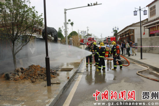 中新網貴州新聞6月21日電(通訊員 史代藻 羅天陽)安順市西秀區舊州鎮文昌路天然氣管道20日11時59分發生泄漏,黃果樹大街消防中隊聞警迅速出動處置。
