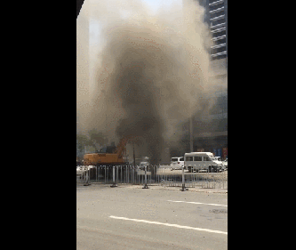 山西太原街頭驚現天然氣管道“井噴” 沖出十幾米高